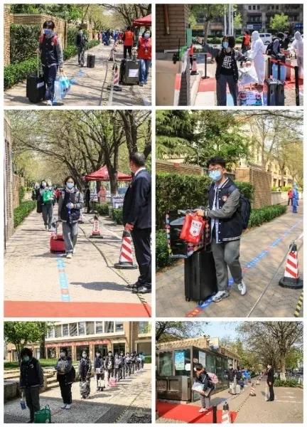 4月13日,開學(xué)第一天,全校初三學(xué)生在學(xué)校志愿者和珠江物業(yè)服務(wù)團(tuán)隊(duì)的引導(dǎo)下,在校門口排好隊(duì),前后保持一米距離,有序進(jìn)入測(cè)溫區(qū),刷卡進(jìn)校。秩序組維持道路交通秩序,避免交叉擁堵,確保學(xué)生安全、平穩(wěn)、有序地進(jìn)入校園。入校時(shí),行李組會(huì)將學(xué)生們的大件物品送至學(xué)生宿舍,讓他們沒有后顧之憂。